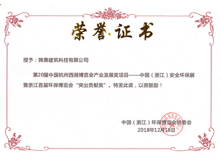 中國(guó)安全環(huán)保展暨浙江首屆環(huán)保博覽會(huì)突出貢獻(xiàn)獎(jiǎng)