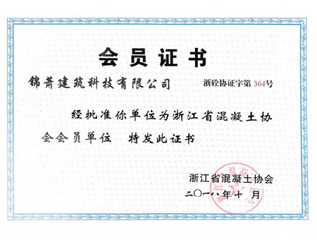 浙江省混凝土協(xié)會(huì)會(huì)員證書
