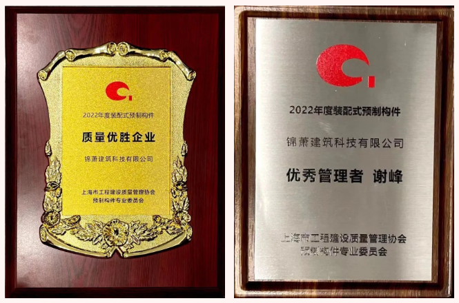 錦蕭科技獲評“2022年度裝配式預(yù)制構(gòu)件質(zhì)量優(yōu)勝企業(yè)”