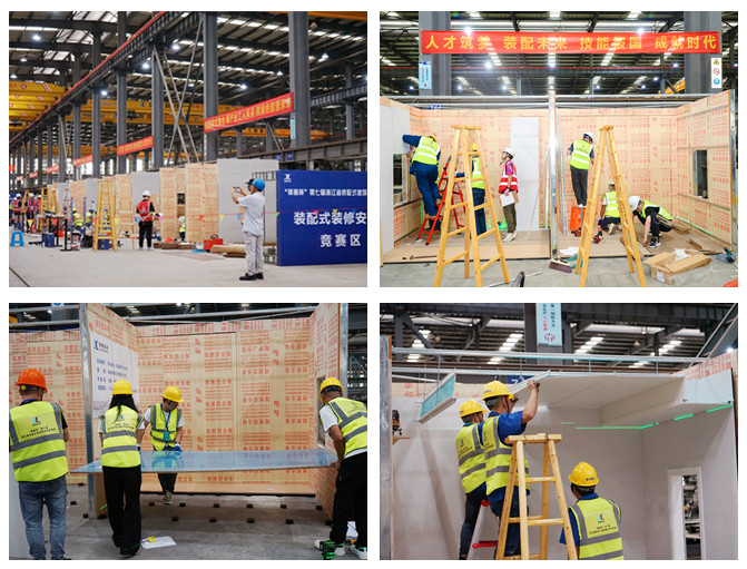 本次競賽包括理論考試和實(shí)操考核兩個部分,理論考試占總成績的30%,實(shí)際操作占總成績的70%。開幕式后,緊張激烈的實(shí)操考核正式拉開帷幕,參賽選手們按序就位,迅速投入到各自的“戰(zhàn)場”。從材料到成品,是一次對參賽選手技能水平的大檢閱,也是一次促進(jìn)技藝提升的展示交流,展現(xiàn)了裝配式建筑產(chǎn)業(yè)工人各個工種的技藝魅力。